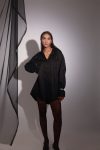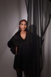 Black hand-embellished overlay shirt with ruching detail and buttons at the front for closure. Fit is perfect for both men and women who want to make a fashion statement. The premium hand embroidered hanging add a touch of elegance and sophistication to the outfit. The full sleeves not only provide warmth but also make the wearer look taller and more stylish making it a versatile addition to any wardrobe.